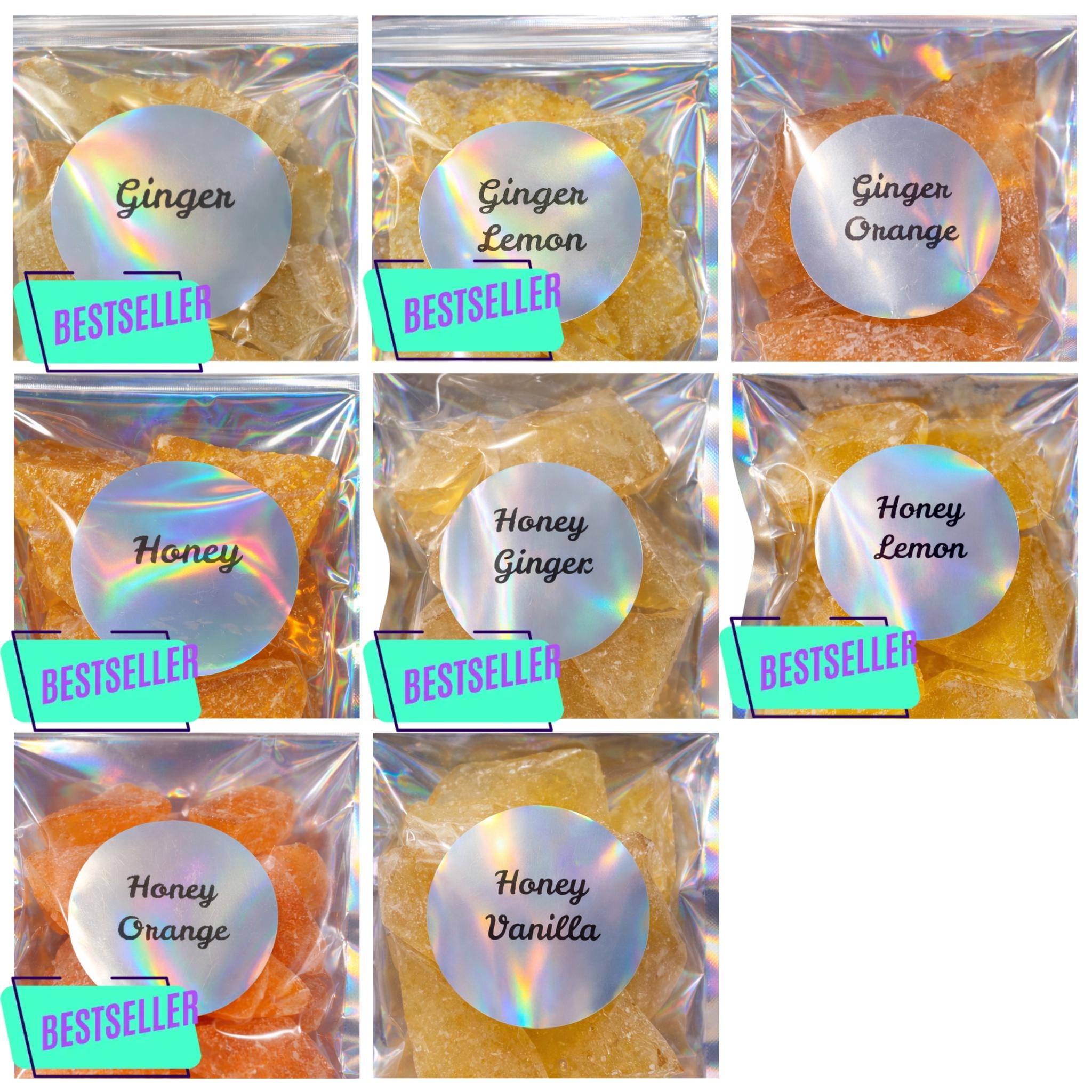 Delight in 8 Honey and Ginger Varieties of Old-Fashioned Hard Tack! Handcrafted 4 oz Bags - Nostalgic Candy Treat